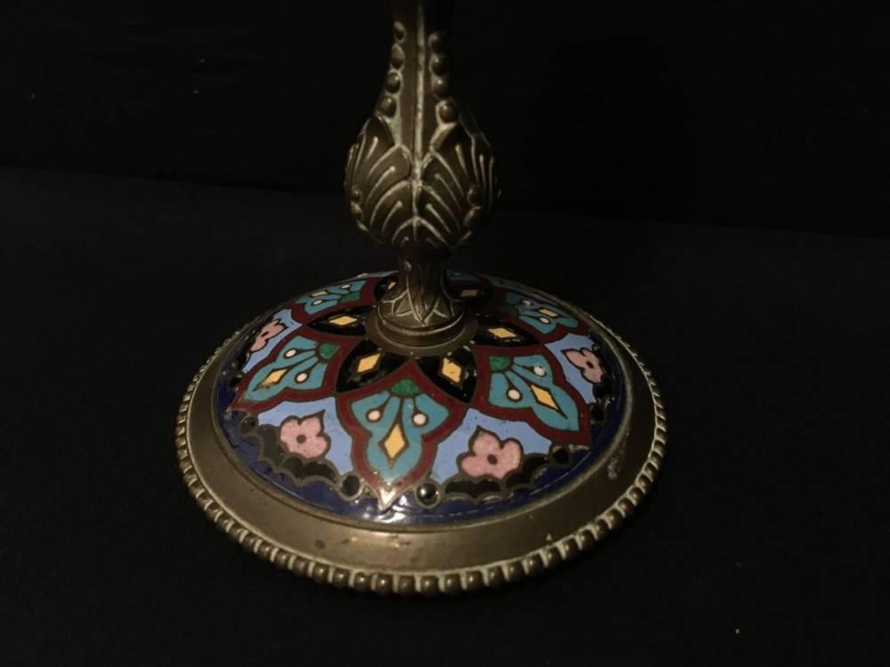 Paire De Bougeoirs Bronze Et émaux Cloisonnés Napoléon III XIXème